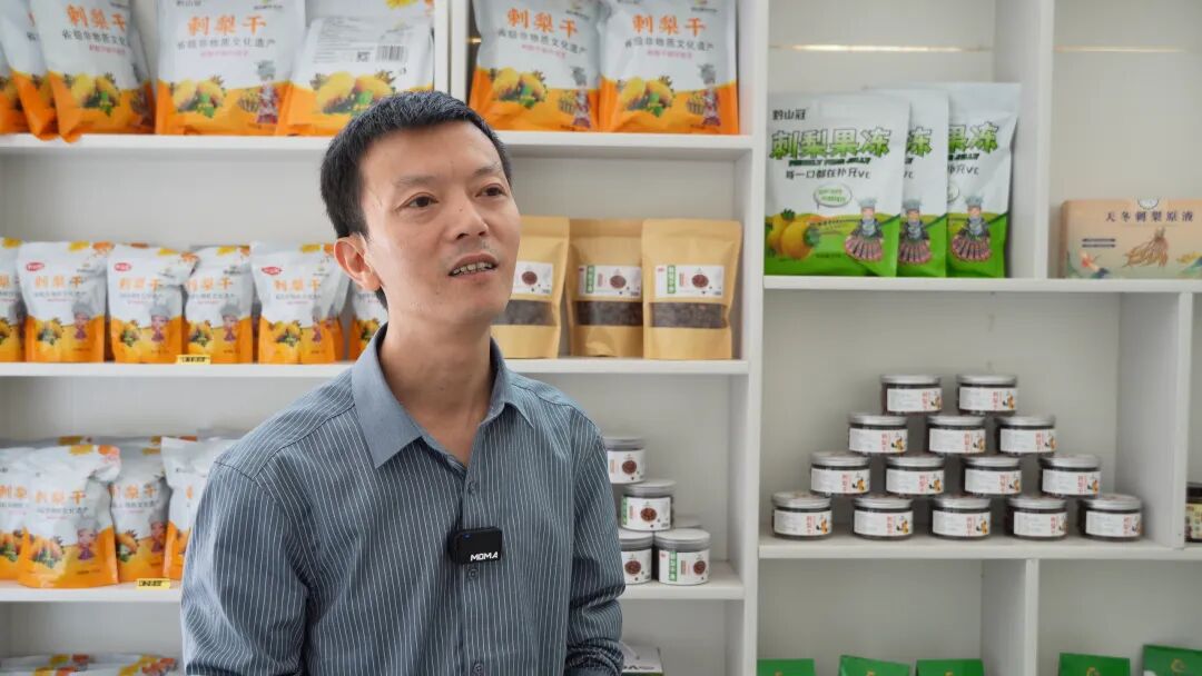 在企业产品展示区,刺梨果脯、刺梨干果、双梨膏、刺梨原汁等刺梨产品琳琅满目,曾经藏在深山的野果,如今“走”出了大山、“走”上了舌尖。