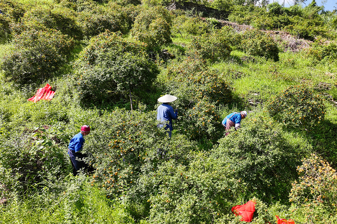 走进刺梨种植基地,种植大户杨昌瑾正带着工人们穿梭在果树间,随着一袋袋刺梨装满,一份实实在在的收益也稳稳装进了杨昌瑾的腰包。