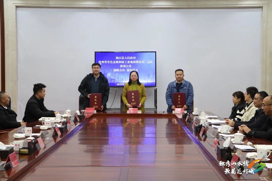 11月20日,独山县与贵州宝地能矿产业集团有限公司、贵州省有色金属和核工业地质勘查局二总队、贵州大学三方签署“富矿精开”战略合作框架协议。