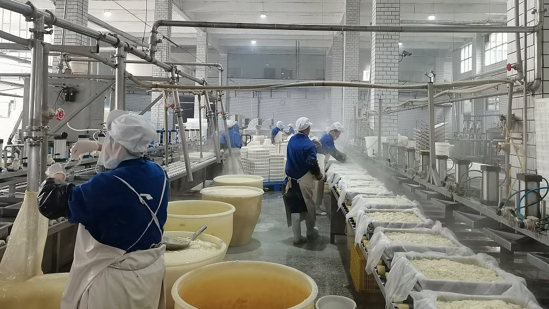 工人在贵州祖名豆制品有限公司生产车间忙碌