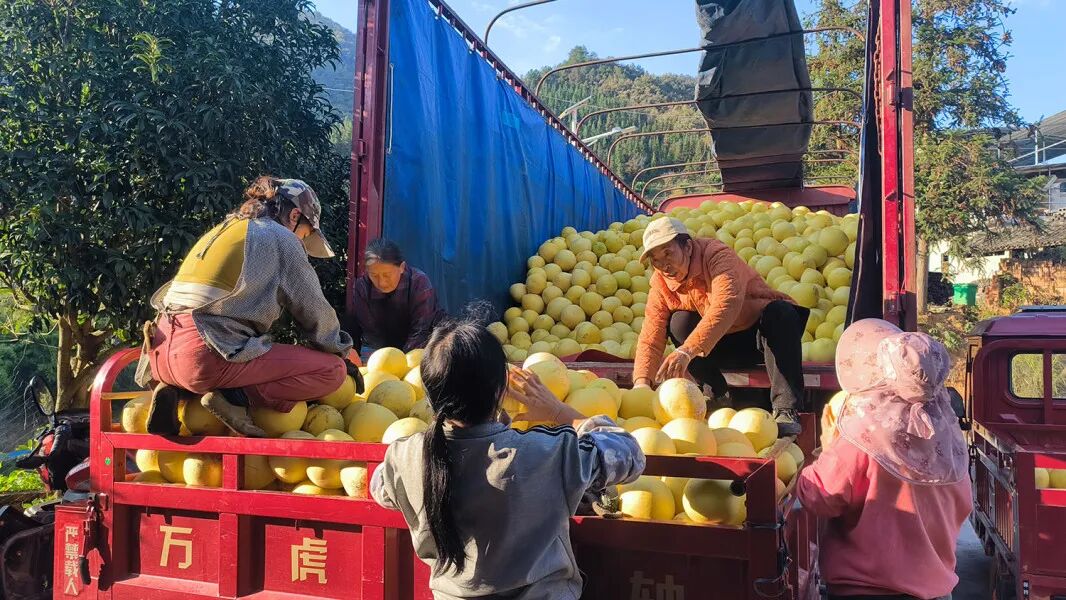 掌布镇的蜜柚装车待发