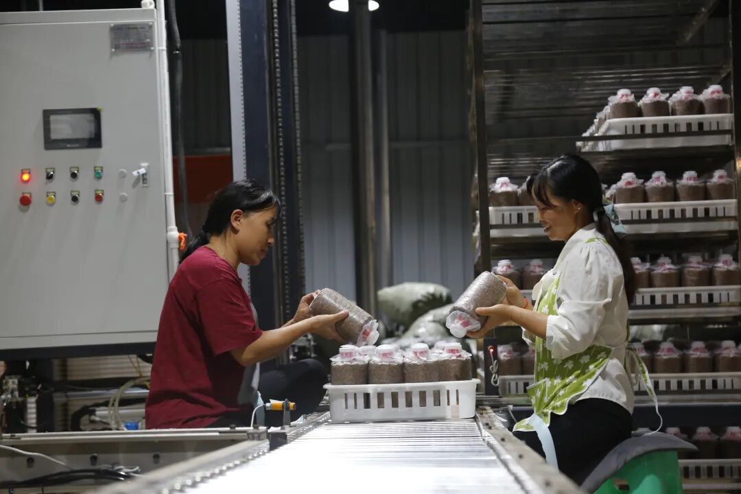 该企业拥有14个菌棒培养库,每个培养库内都配备了温湿度自动调控系统。“每个培养库能存9万棒菌棒,现在14个培养库已经全部装满,接下来还要新建二期20亩菌种培养库和原材料加工车间。”任文平翻开生产台账,一组组数据清晰展现生产热度,“今年来,已加工各类菌棒400万棒,其中红托竹荪菌棒330万棒、天麻蜜环菌100万棒,环比增长30%。”工人正在检查菌棒