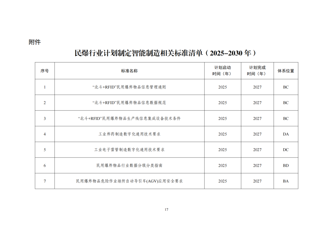 为切实发挥标准对民用爆炸物品行业智能制造的引领作用,我部组织编制了《民爆行业落实〈国家智能制造标准体系建设指南〉实施方案》。现印发给你们,请结合本地区、本行业、本领域实际抓好落实。